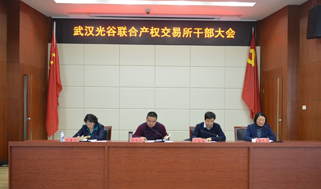 12月26日下午,我所召开干部大会,省委组织部部务委员王发读宣布省委决定:曾庆祝同志任武汉光谷联合产权交易所有限公司党委书记、董事长。省政府国资委党委委员、副主任胡铁军出席并主持会议。