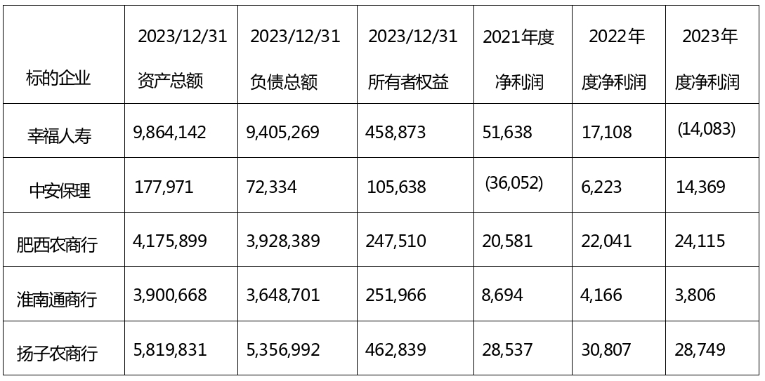 (1)标的企业名称:幸福人寿保险股份有限公司。
