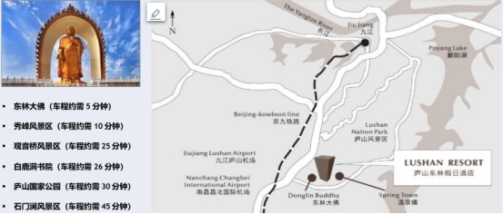 庐山东林假日酒店地处庐山南坡脚下的天沐温泉镇,开车约5分钟就能到达东林大佛,四周遍植茂密的珍稀林木,景色优美,幽静宜人。