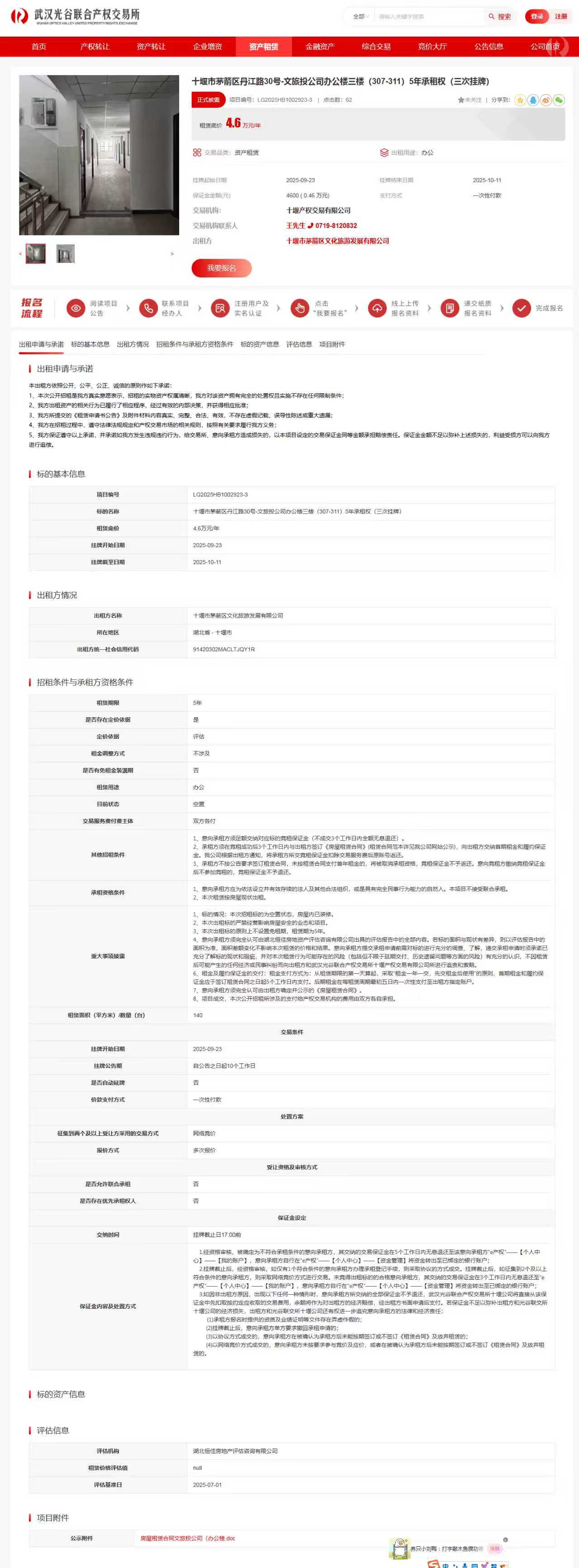 十堰市茅箭区丹江路30号-文旅投公司办公楼三楼(307-311)5年承租权(三次挂牌)