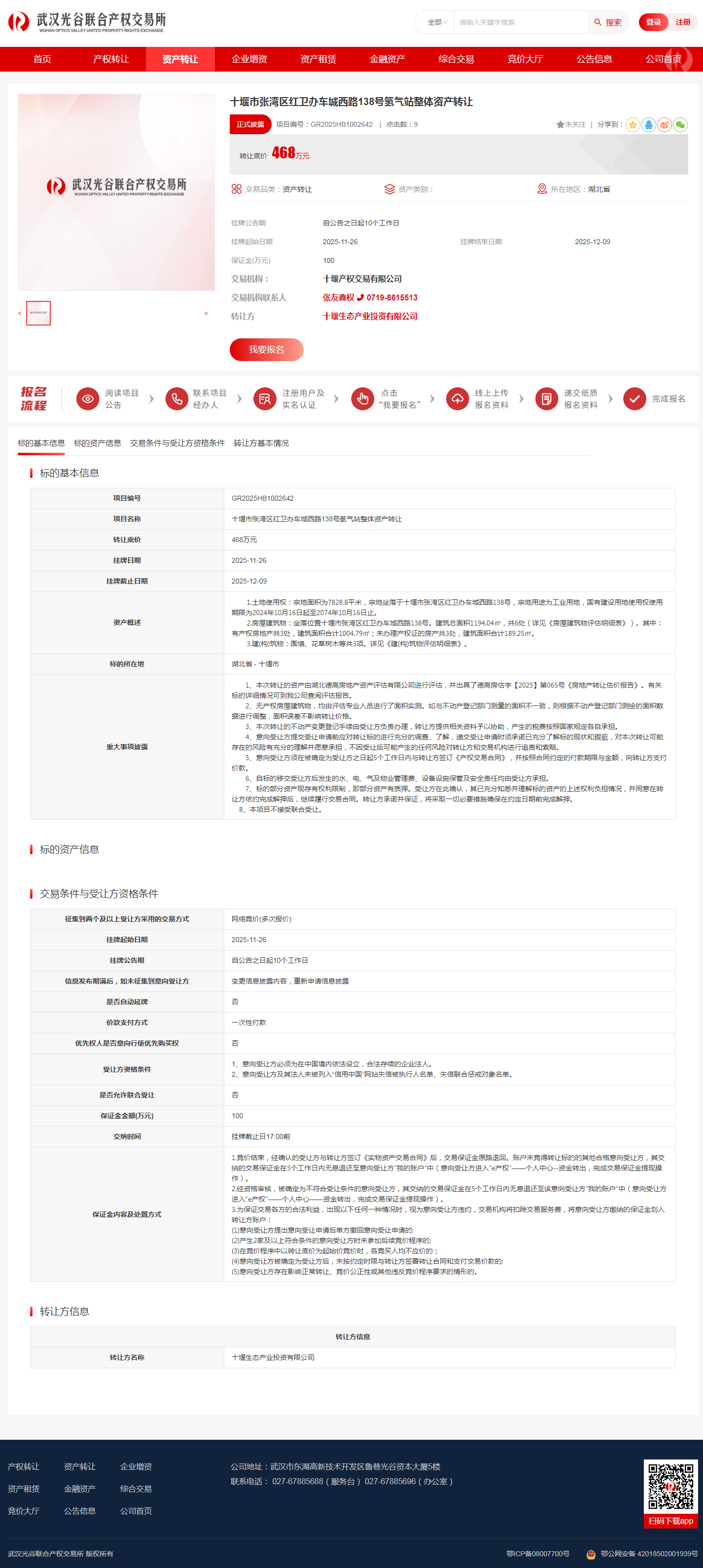 十堰市张湾区红卫办车城西路138号氢气站整体资产转让