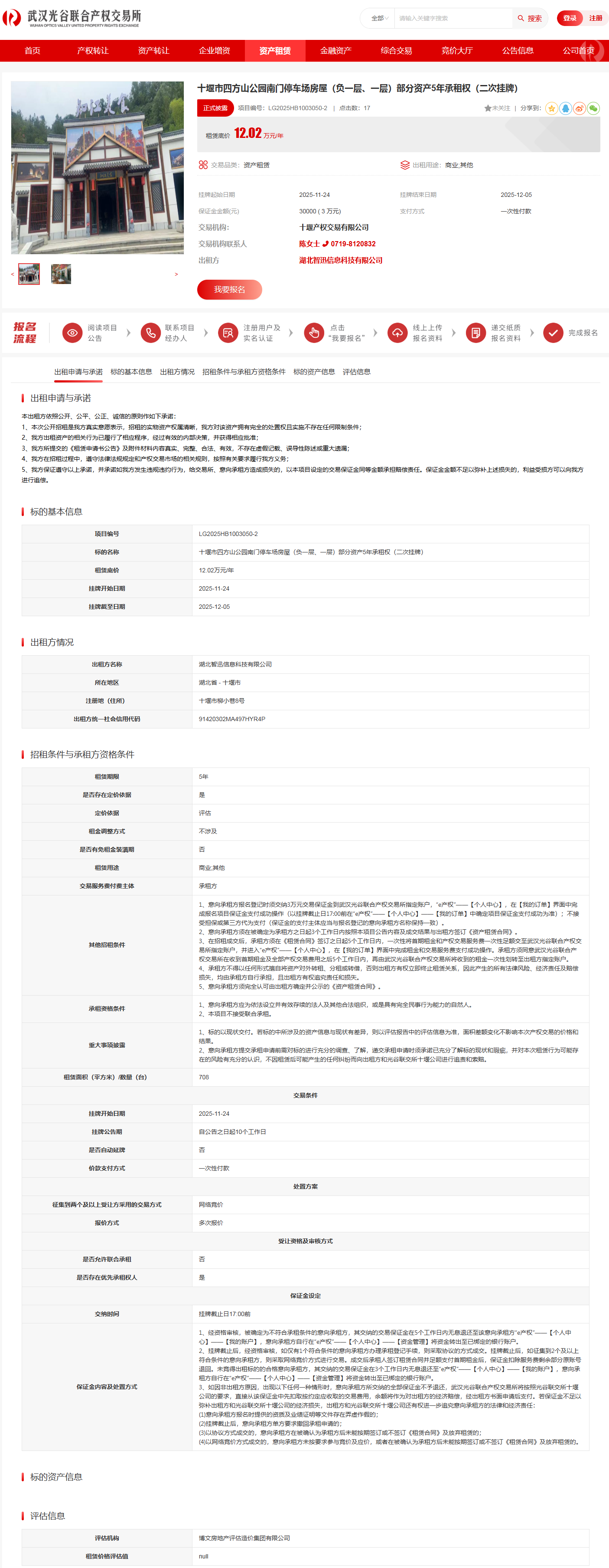 十堰市四方山公园南门停车场房屋(负一层、一层)部分资产5年承租权(二次挂牌)