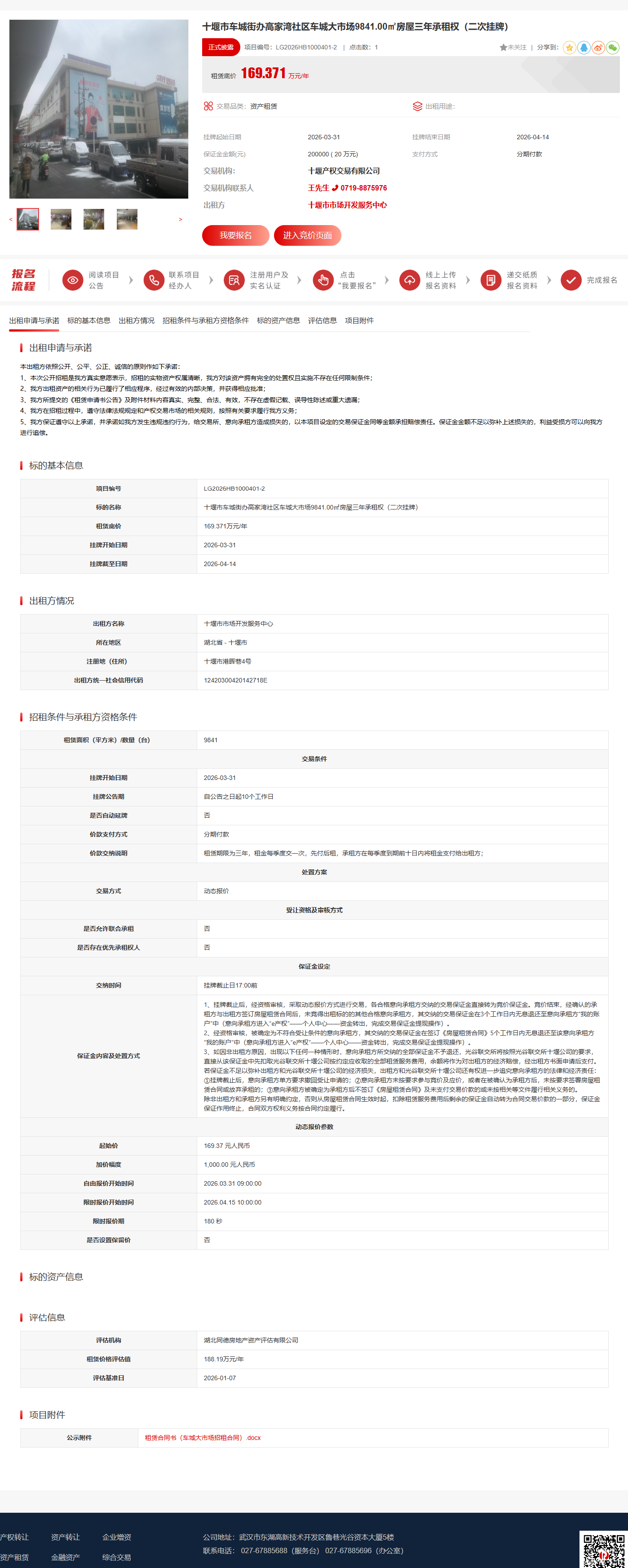 十堰市车城街办高家湾社区车城大市场9841.00㎡房屋三年承租权(二次挂牌)