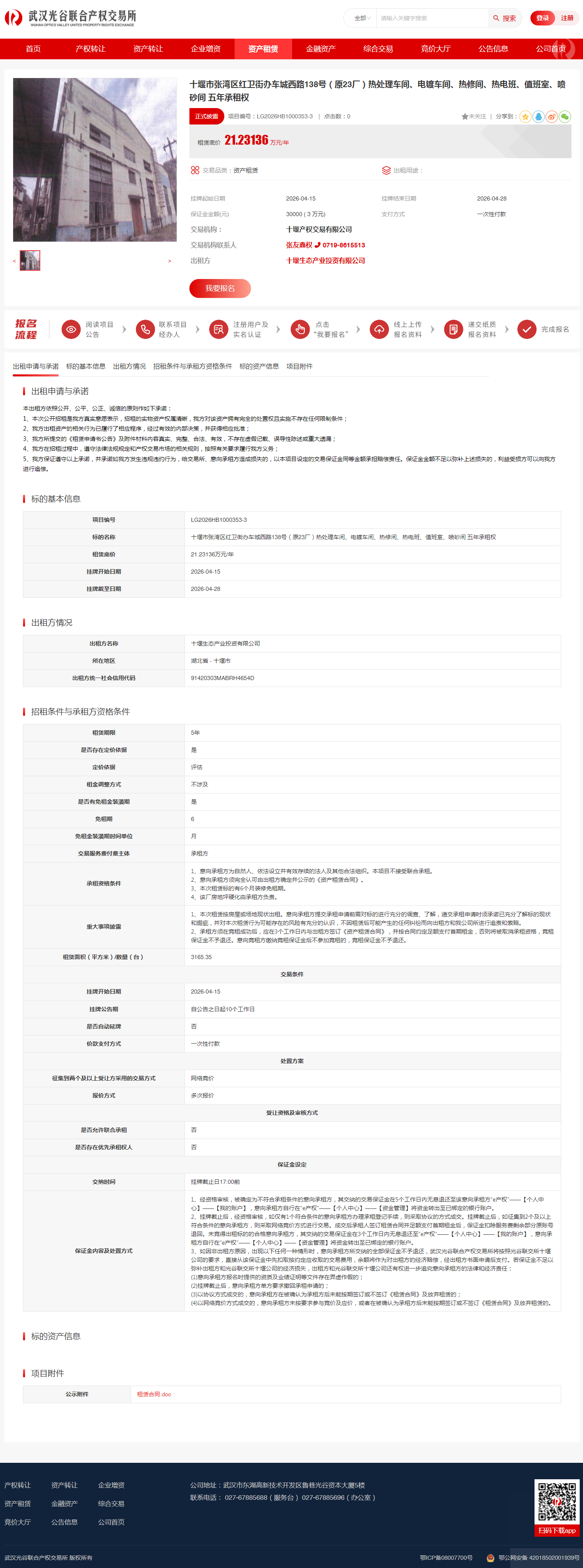 十堰市张湾区红卫街办车城西路138号(原23厂)热处理车间、电镀车间、热修间、热电班、值班室、喷砂间 五年承租权